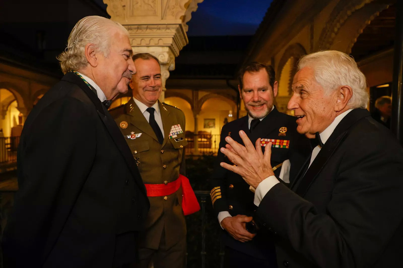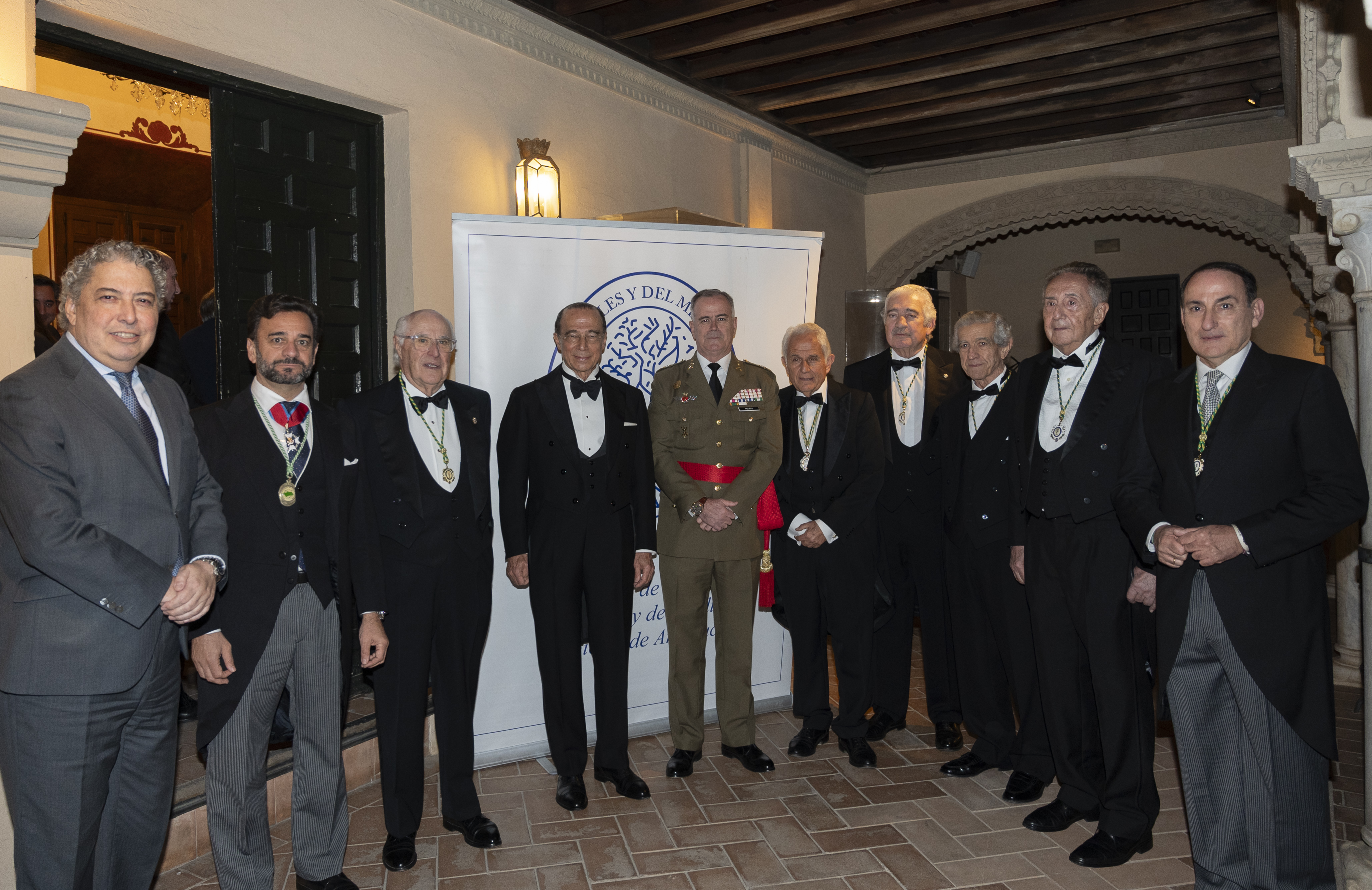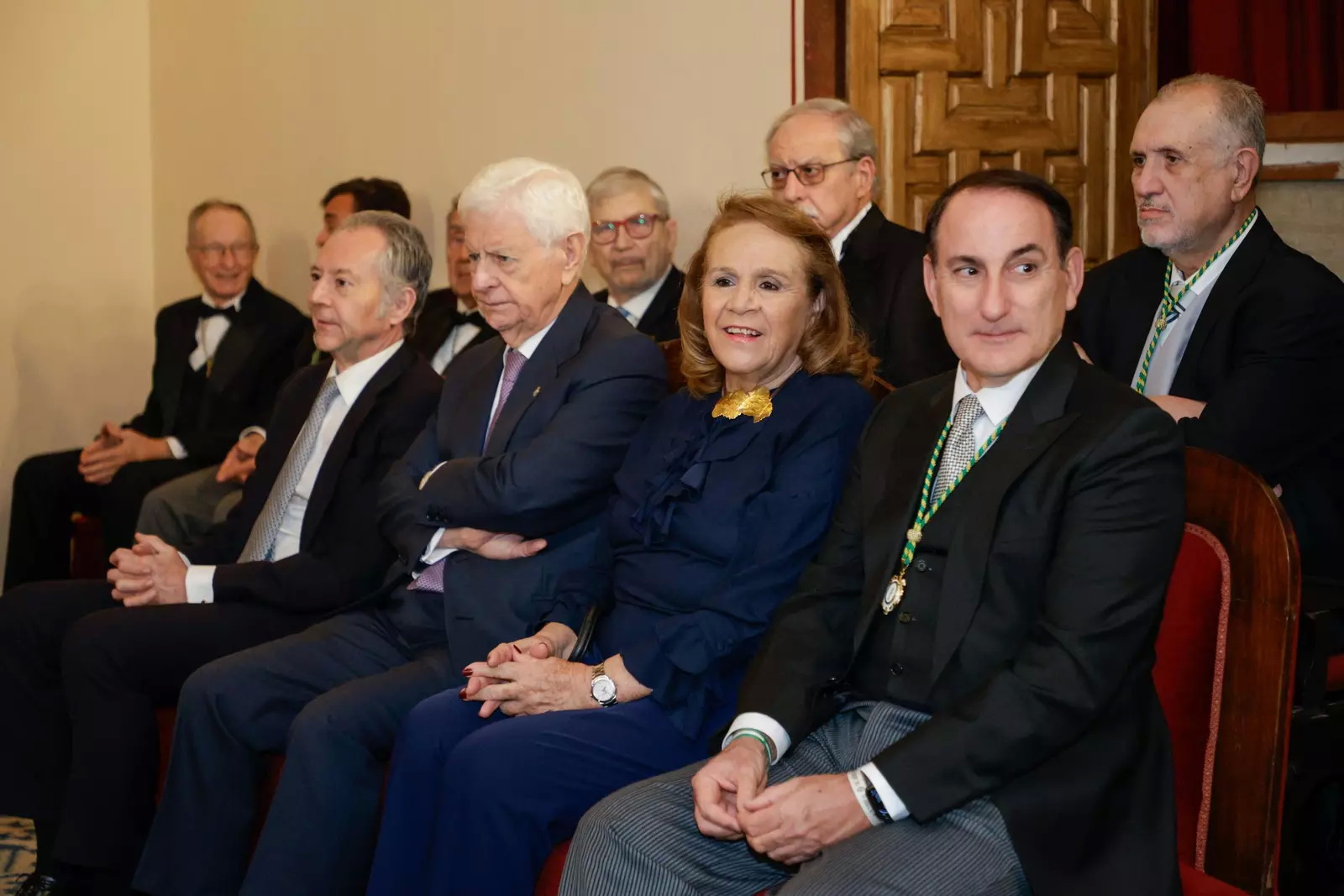 Recepción de autoridades Manuel Alejandro Cardenete Flores, Presidente de la Cámara de Cuentas de Andalucía, Javier González de Lara y Sarria, Antonio Pascual Acosta, Presidente de la Academia, Carolina España Rey, Consejera de Economía, Hacienda y Fondos Europeos de la Junta de Andalucía, José Manuel Domínguez Martínez, Presidente de la Fundación Bancaria Unicaja, Sergio Corral Delgado, Director General de la Fundación Bancaria Unicaja, y Santiago Herrero León, Secretario canciller de la Academia.