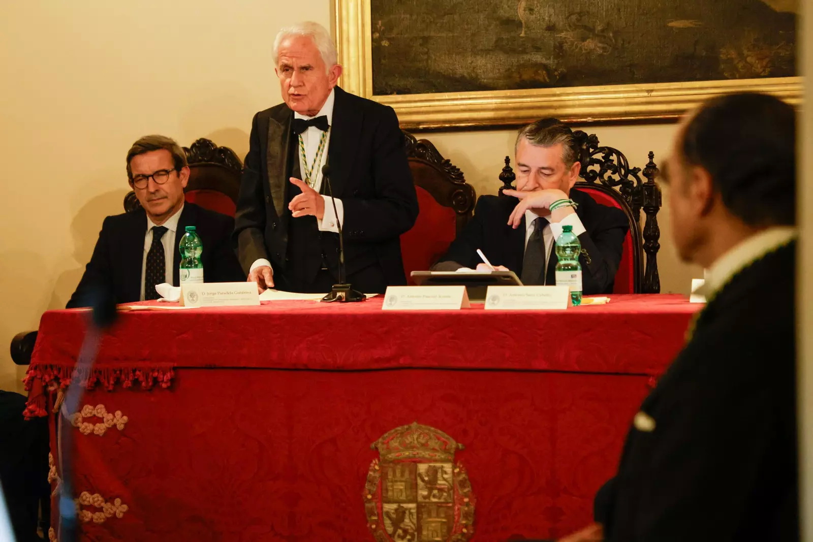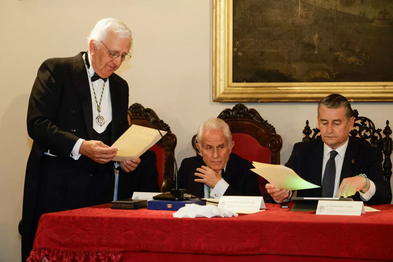 El Secretario Canciller, Santiago Herrero León, da lectura al acta del nombramiento del nuevo académico