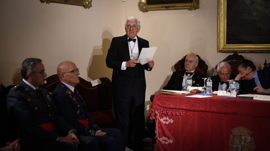 Santiago Herrero León, Secretario Canciller de la Academia, procede a la lectura del acta de nombramiento en presencia de