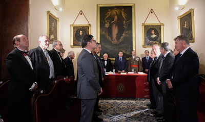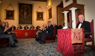 El Secretario Canciller, Santiago Herrero León, da lectura al acta del nombramiento del nuevo académico