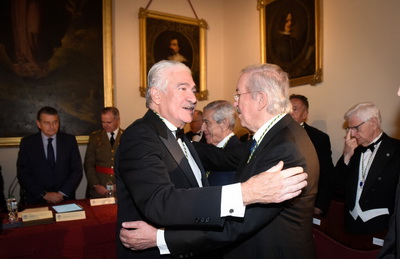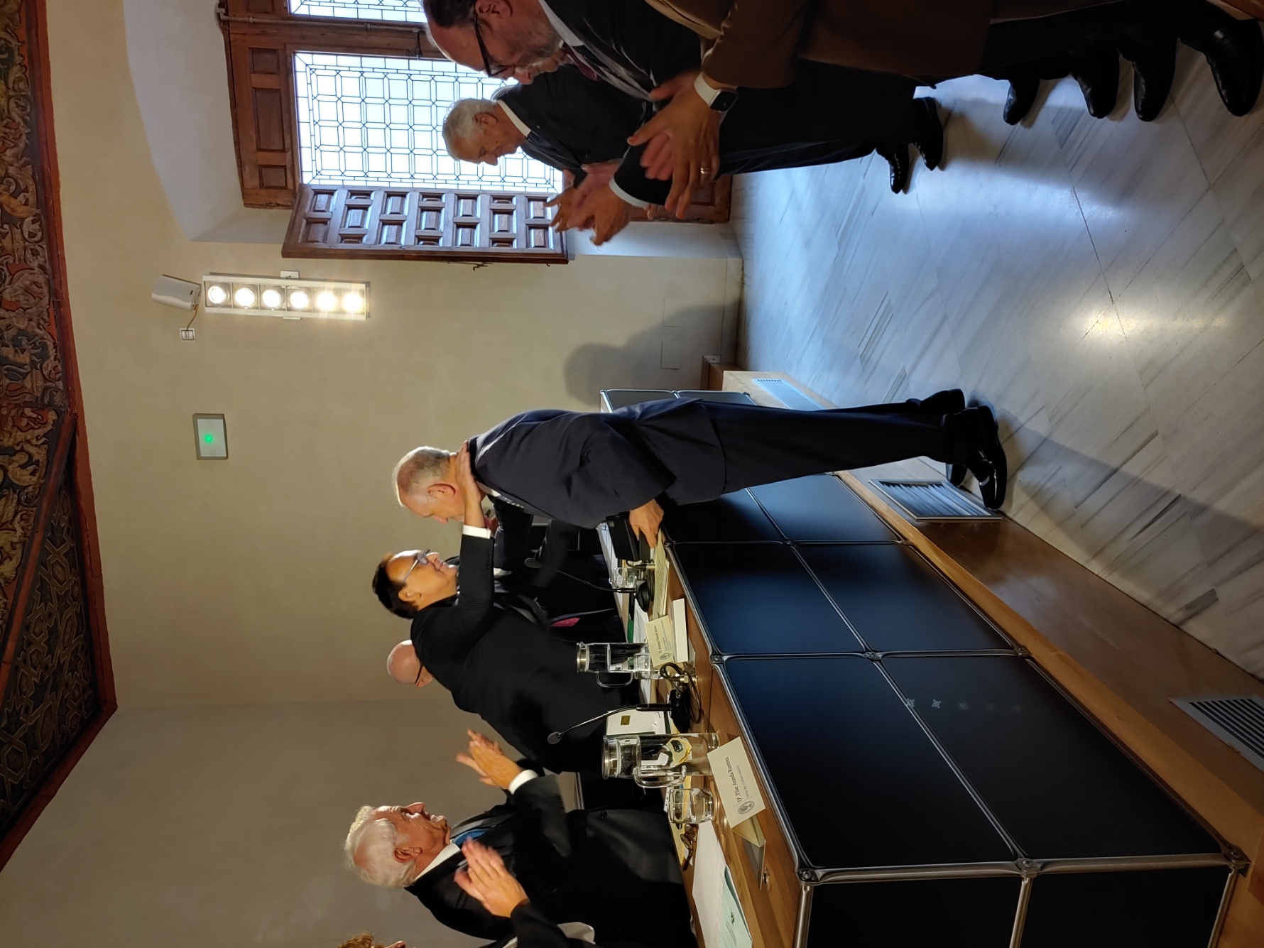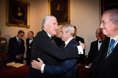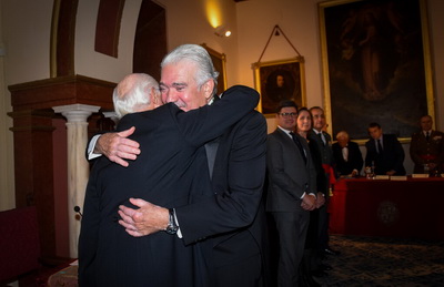 El nuevo académico abraza a su padrino