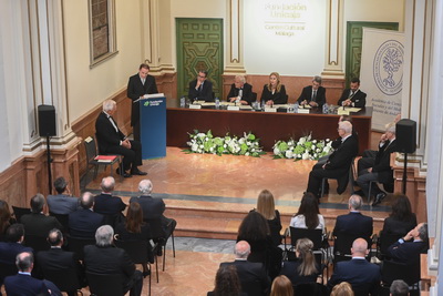 José Manuel Domínguez Martínez, Presidente de la Fundación Bancaria Unicaja Javier González de Lara y Sarria, durante su discurso