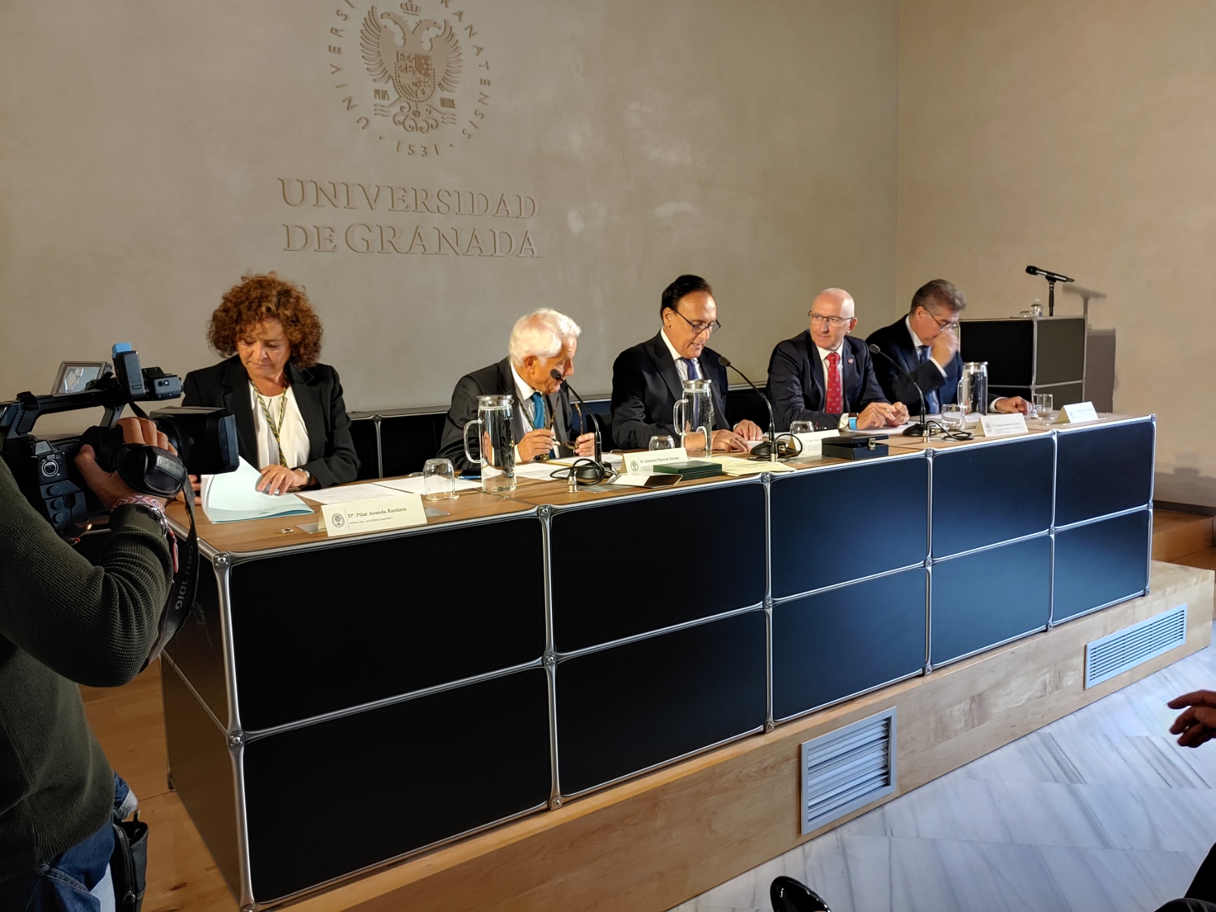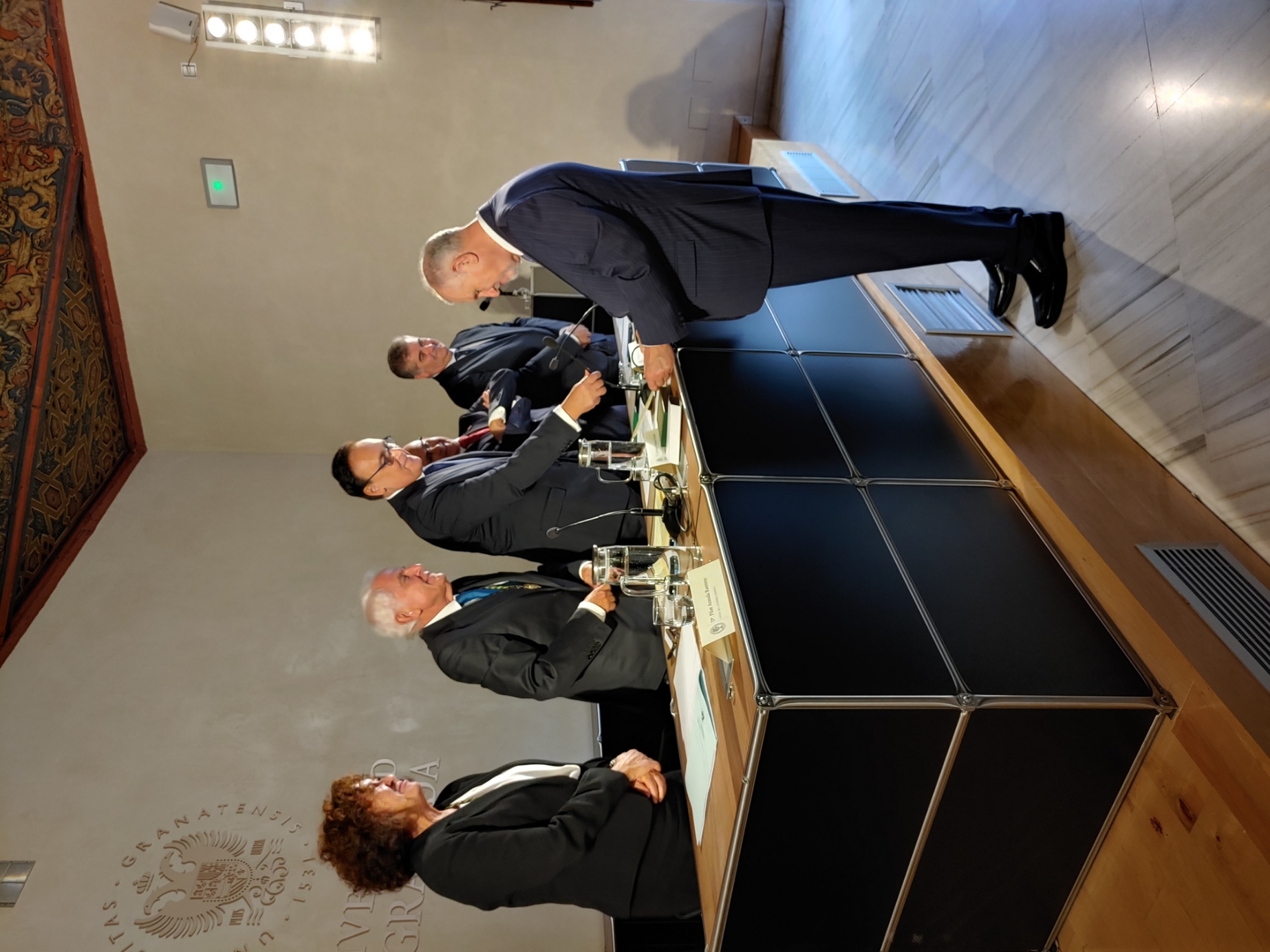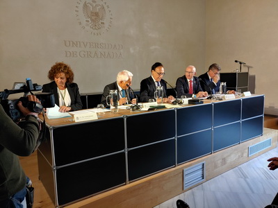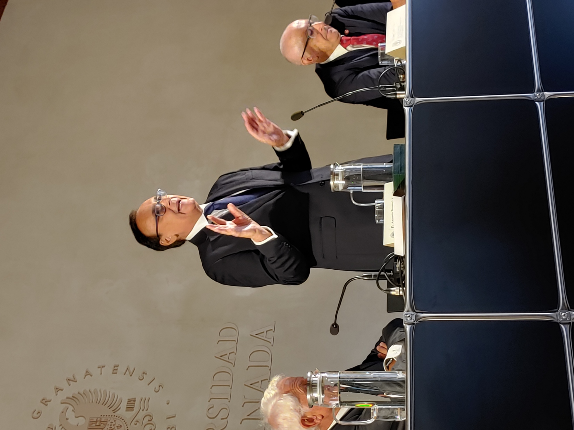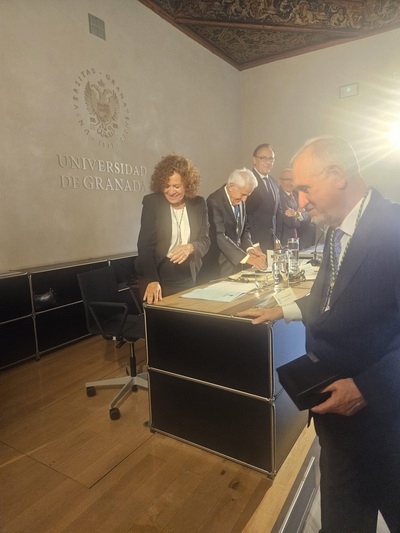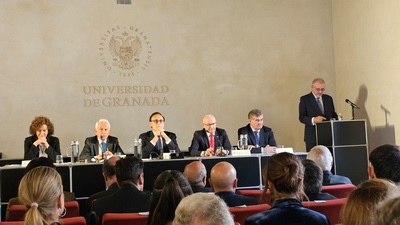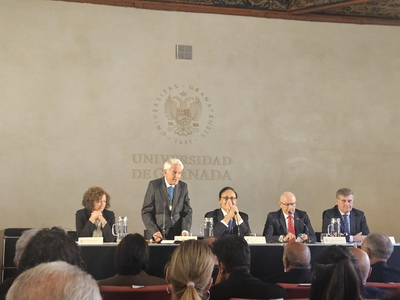 Recepción de autoridades. Antonio Miguel Posadas Chinchilla, Secretario General de Investigación e Innovación, Santiago Herrero León, Secretario Canciller de la Academia, Andrés González Carmona, Antonio Pascual Acosta, Presidente de la Academia, José Carlos Gómez Villamandos, Consejero de Universidad, Investigación e Innovación, Enrique Herrera Viedma, Rector sustituto de la Universidad de Granada, Pilar Aranda Ramírez, Académica madrina, y María José Martín Gómez, delegada Territorial de Desarrollo Educativo y Formación Profesional y de Universidad, Investigación e Innovación en Granada. Pilar Aranda Ramírez, Antonio Pascual Acosta, José Carlos Gómez Villamandos, Enrique Herrera Viedma y Antonio Miguel Posadas Chinchilla. Santiago Herrero León, Secretario Canciller de la Academia, da lectura al acta de nombramiento. Santiago Herrero León y Pilar Aranda Ramírez recogen al nuevo académico. Andrés González Carmona, durante su discurso. Andrés González Carmona, durante su discurso. Andrés González Carmona, presta juramento como académico. Antonio Pascual Acosta impone la medalla de académico. Antonio Pascual Acosta abraza al nuevo académico. José Carlos Gómez Villamandos entrega la placa de académico. José Carlos Gómez Villamandos abraza al nuevo académico. El nuevo académico sube a abrazar a Pilar Aranda. Andrés González Carmona con la medalla y la placa de académico. La académica madrina, Pilar Aranda Ramírez, durante su discurso de contestación. El Presidente de la Academia, Antonio Pascual Acosta, durante su discurso. El Consejero de Universidad, Investigación e Innovación, José Carlos Gómez Villamandos, durante su discurso. El Secretario Canciller y el nuevo académico. Aspecto de la sala. Aspecto de la sala. Aspecto de la sala. Notas de prensa |