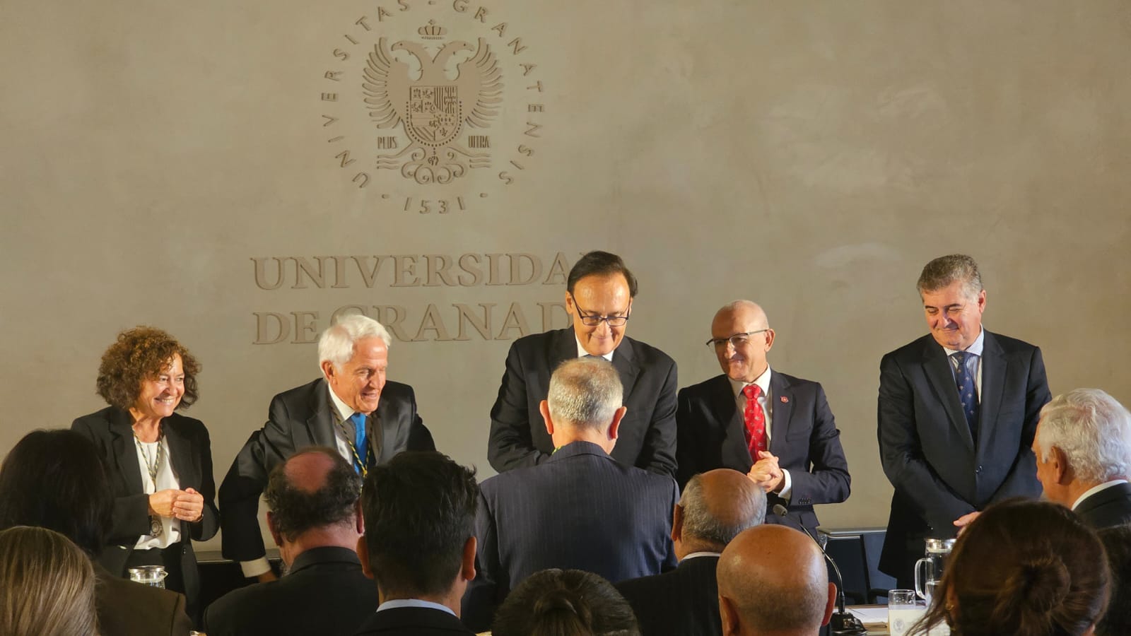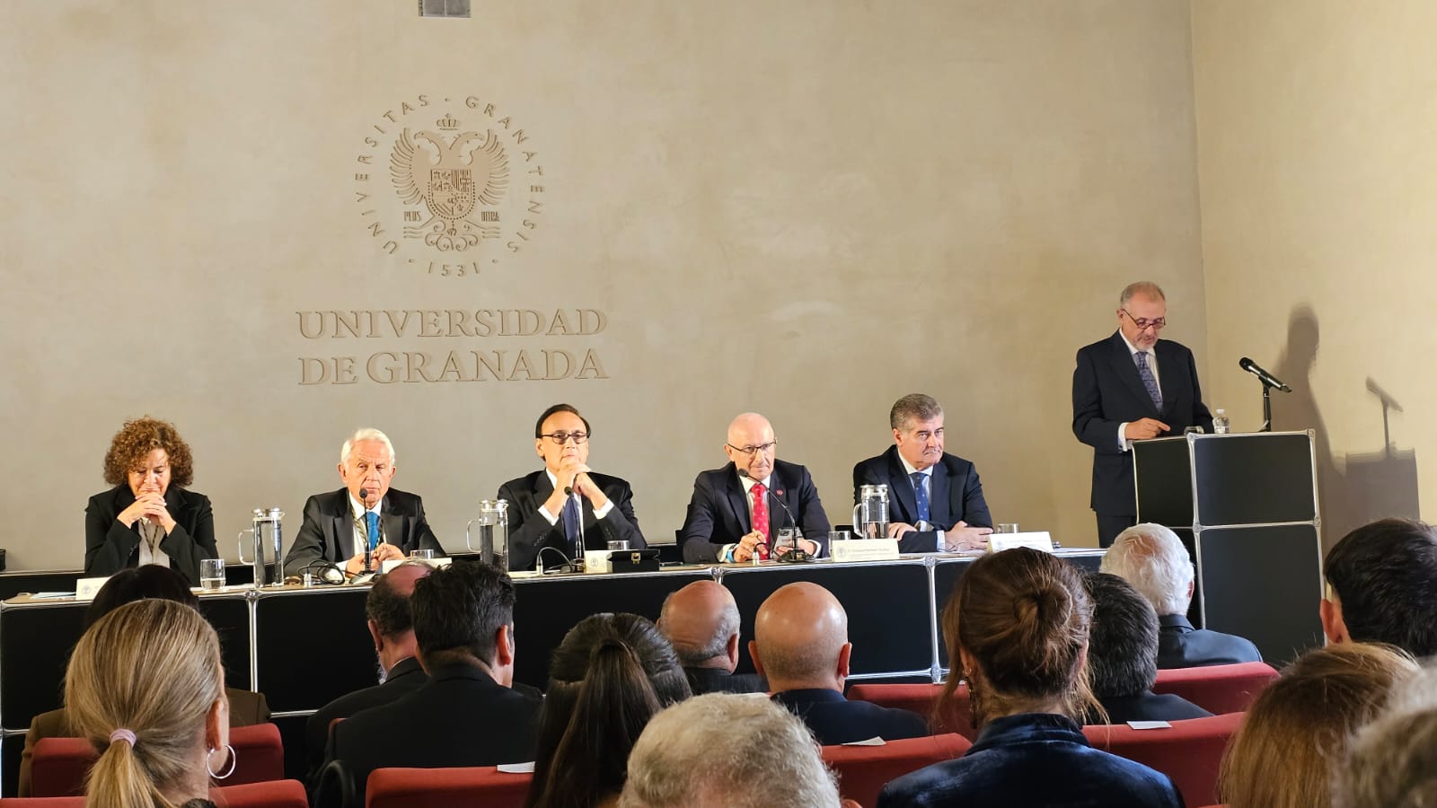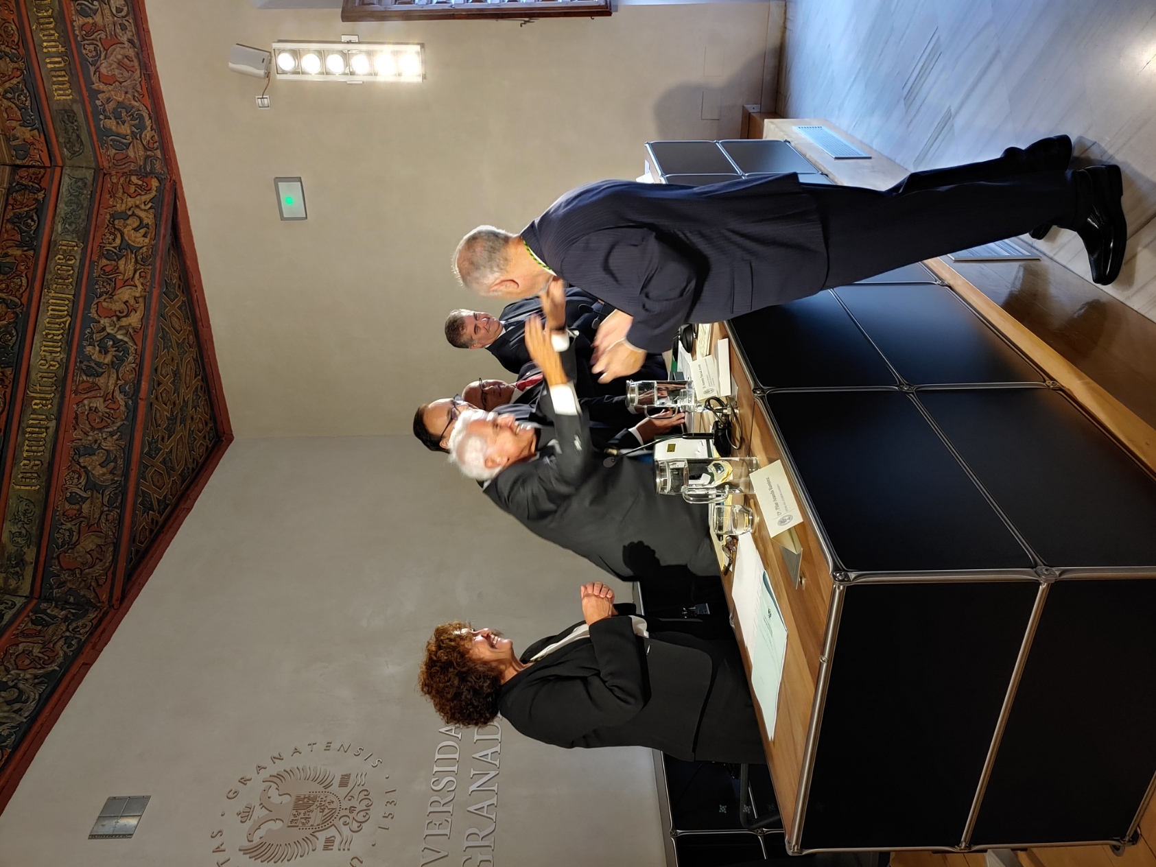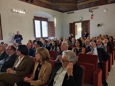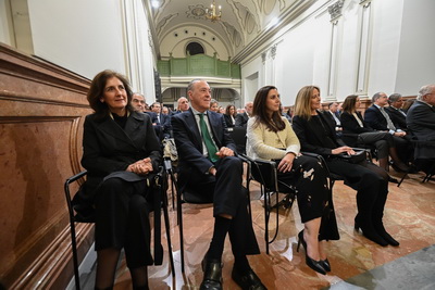 Recepción de autoridades. Antonio Miguel Posadas Chinchilla, Secretario General de Investigación e Innovación, Santiago Herrero León, Secretario Canciller de la Academia, Andrés González Carmona, Antonio Pascual Acosta, Presidente de la Academia, José Carlos Gómez Villamandos, Consejero de Universidad, Investigación e Innovación, Enrique Herrera Viedma, Rector sustituto de la Universidad de Granada, Pilar Aranda Ramírez, Académica madrina, y María José Martín Gómez, delegada Territorial de Desarrollo Educativo y Formación Profesional y de Universidad, Investigación e Innovación en Granada. Pilar Aranda Ramírez, Antonio Pascual Acosta, José Carlos Gómez Villamandos, Enrique Herrera Viedma y Antonio Miguel Posadas Chinchilla. Santiago Herrero León, Secretario Canciller de la Academia, da lectura al acta de nombramiento. Santiago Herrero León y Pilar Aranda Ramírez recogen al nuevo académico. Andrés González Carmona, durante su discurso. Andrés González Carmona, durante su discurso. Andrés González Carmona, presta juramento como académico. Antonio Pascual Acosta impone la medalla de académico. Antonio Pascual Acosta abraza al nuevo académico. José Carlos Gómez Villamandos entrega la placa de académico. José Carlos Gómez Villamandos abraza al nuevo académico. El nuevo académico sube a abrazar a Pilar Aranda. Andrés González Carmona con la medalla y la placa de académico. La académica madrina, Pilar Aranda Ramírez, durante su discurso de contestación. El Presidente de la Academia, Antonio Pascual Acosta, durante su discurso. El Consejero de Universidad, Investigación e Innovación, José Carlos Gómez Villamandos, durante su discurso. El Secretario Canciller y el nuevo académico. Aspecto de la sala. Aspecto de la sala. Aspecto de la sala. Notas de prensa |