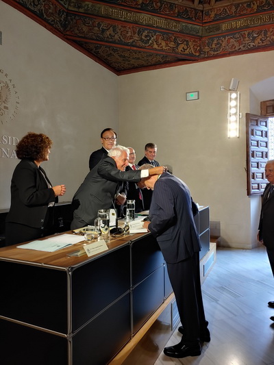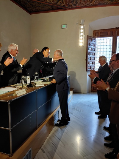 Imposición de la medalla de académica por parte del Presidente de la Academia, Antonio Pascual Acosta