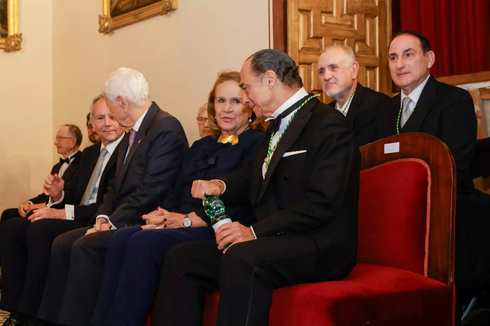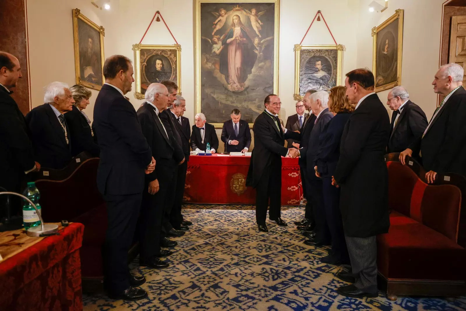 recogen a Antonio Vázquez Romero, Académico entrante, para acompañarle a la sala.