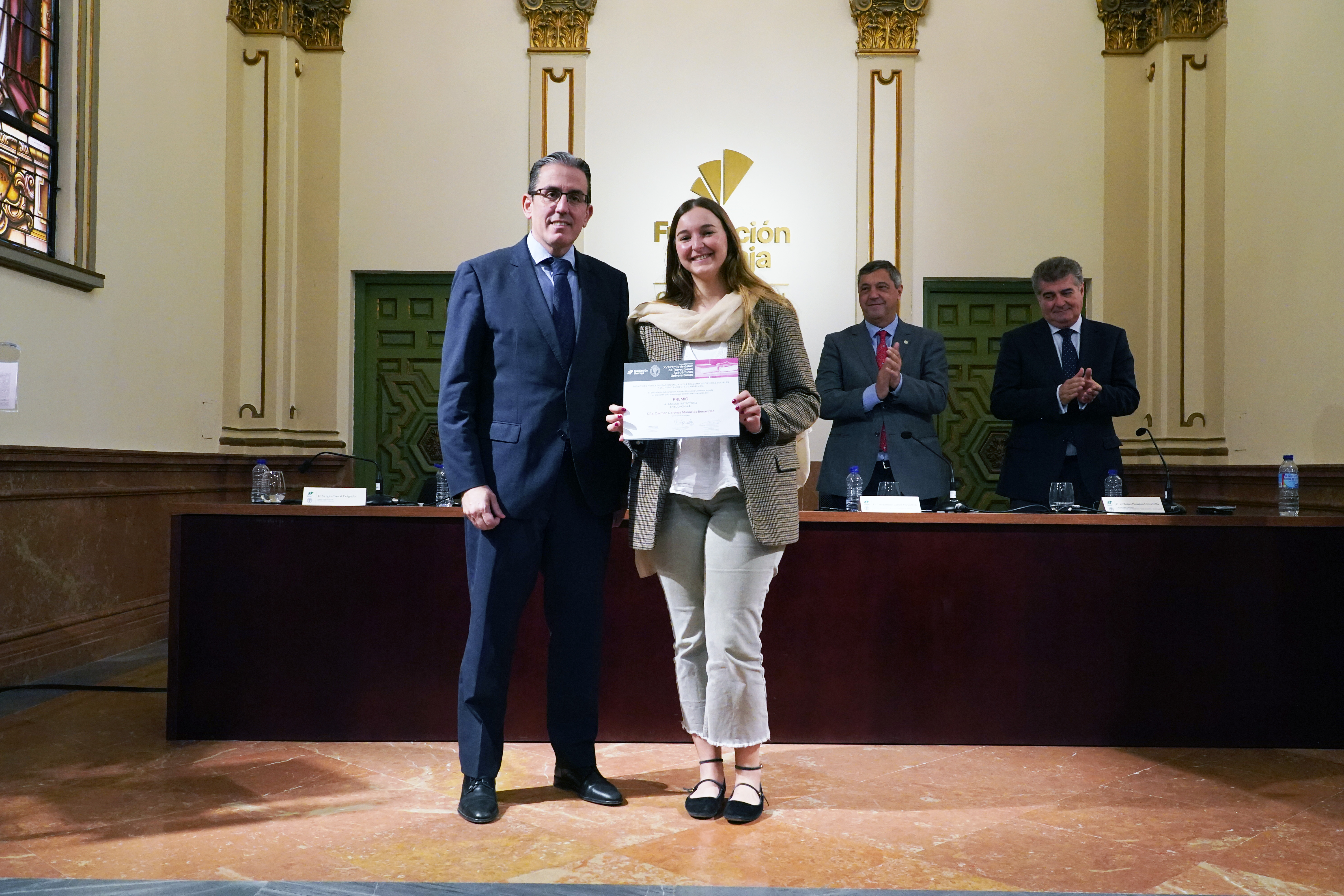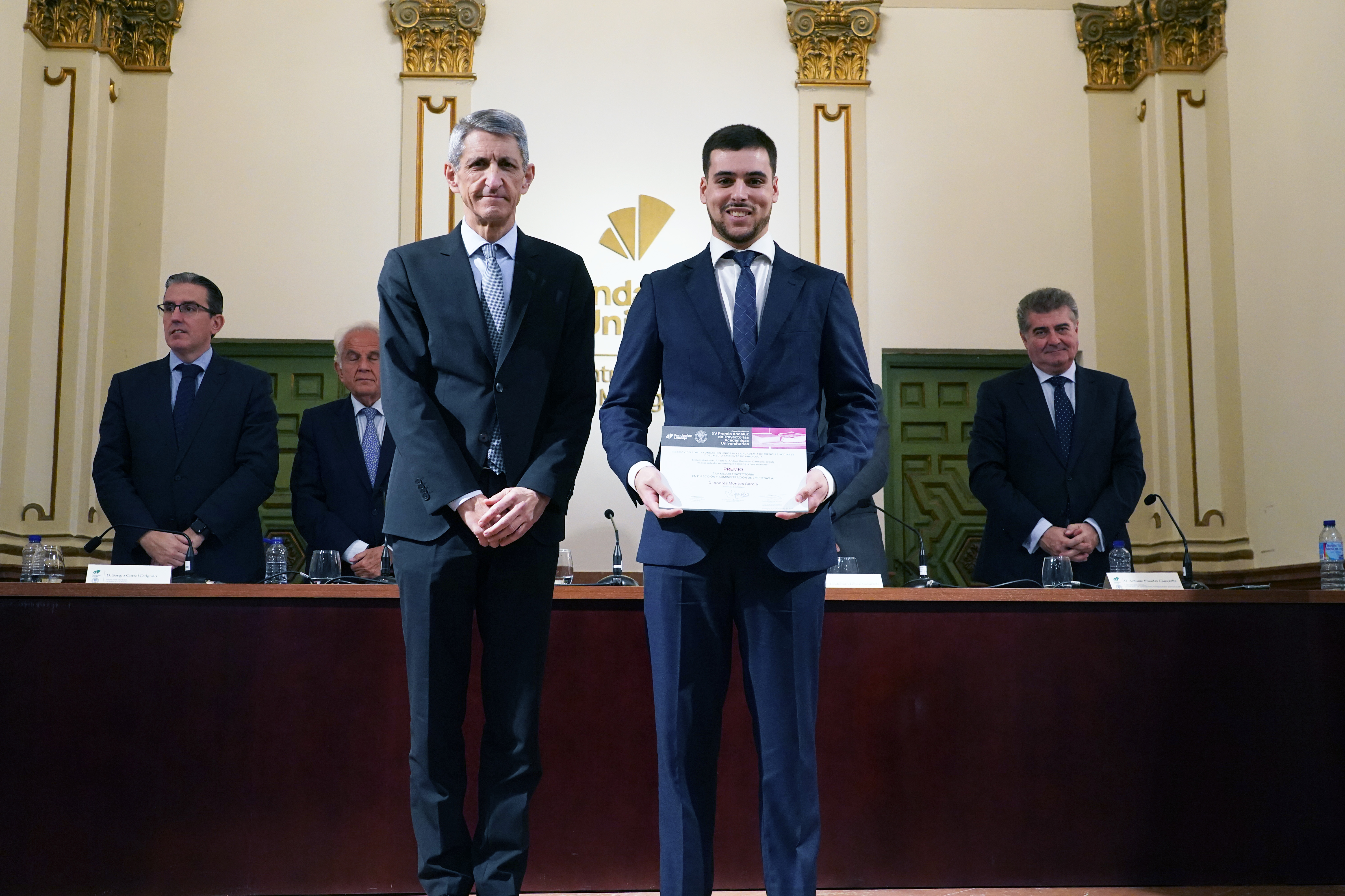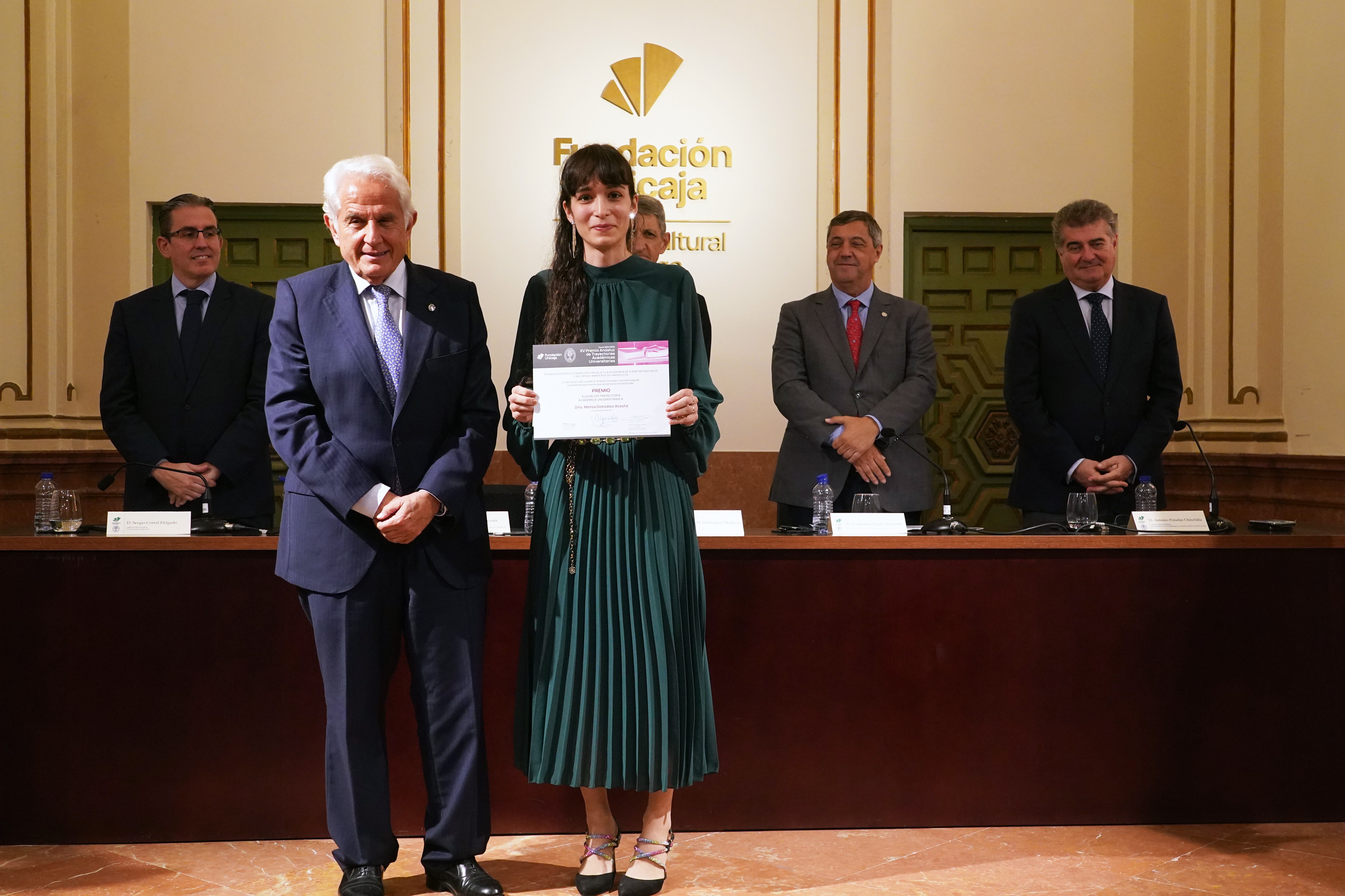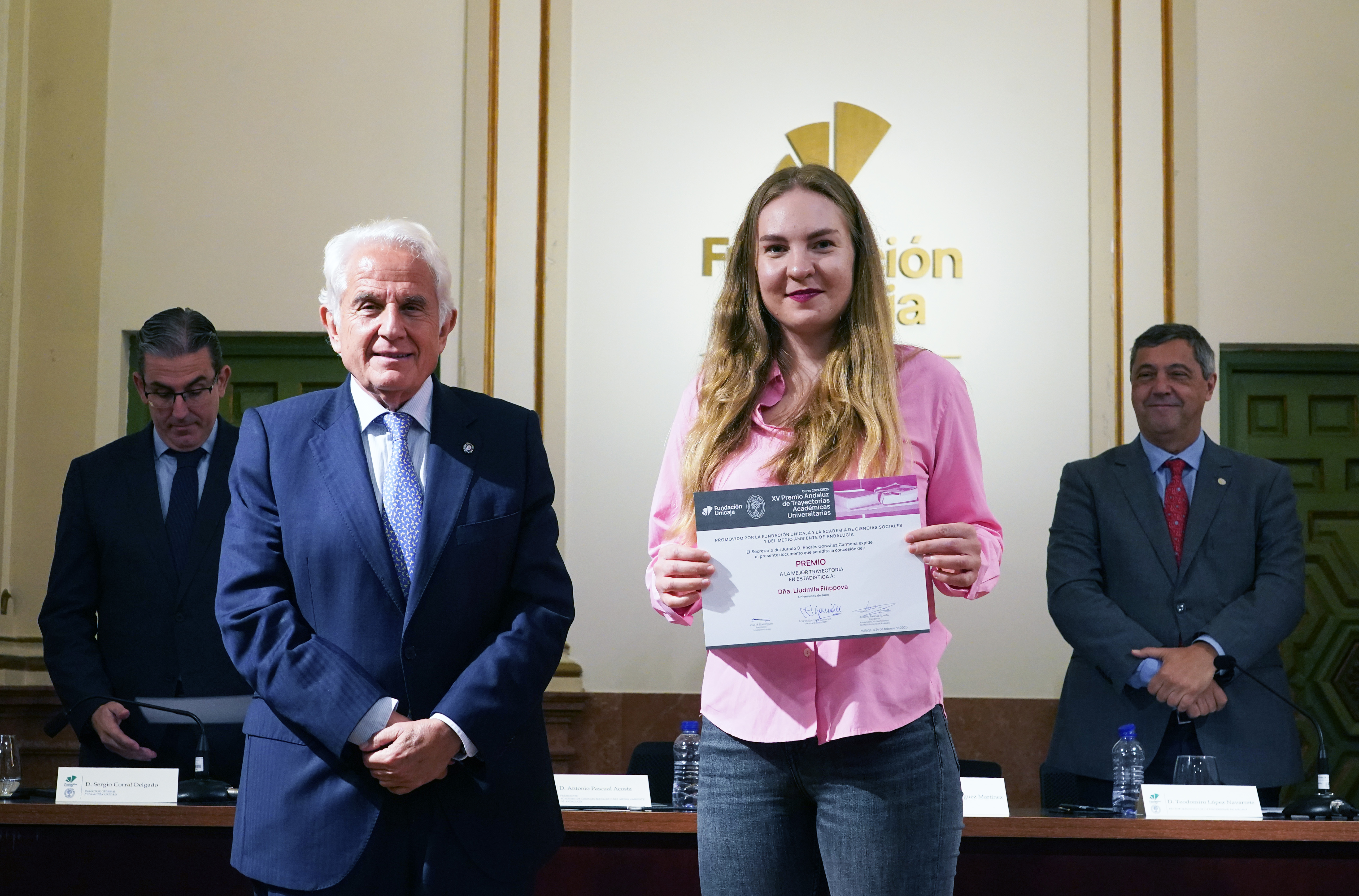 En Málaga, reunidos el día 15 de noviembre de 2024, en la sede de la Fundación Unicaja, los miembros del Jurado para la concesión de los XV Premios de Trayectorias Académicas constituido por D. Antonio Pascual Acosta, Presidente de la Academia de Ciencias Sociales y del Medio Ambiente de Andalucía, que actuó como Presidente, D. José Manuel Domínguez Martínez, Presidente de la Fundación Unicaja, D. Teodomiro López Navarrete, Rector Magnífico de la Universidad de Málaga, D. Casimiro Mantell Serrano, Rector Magnífico de la Universidad de Cádiz, D. Antonio Posadas Chinchilla, Secretario General de Investigación e Innovación de la Junta de Andalucía, D. Sergio Corral Delgado, Director General de la Fundación Unicaja, D.ª Rafaela Osuna Gómez, catedrática de Estadística e Investigación Operativa de la Universidad de Sevilla, D.ª Cristina Rico Cabeza, Directora de División de Actividades, Comunicación e Imagen en Fundación Unicaja y D. Andrés González Carmona, de la Academia de Ciencias Sociales y del Medio Ambiente de Andalucía, que actuó como Secretario del Jurado, acordaron, en virtud de las trayectorias académicas y de los méritos aportados por las personas solicitantes, otorgar por unanimidad los siguientes premios: