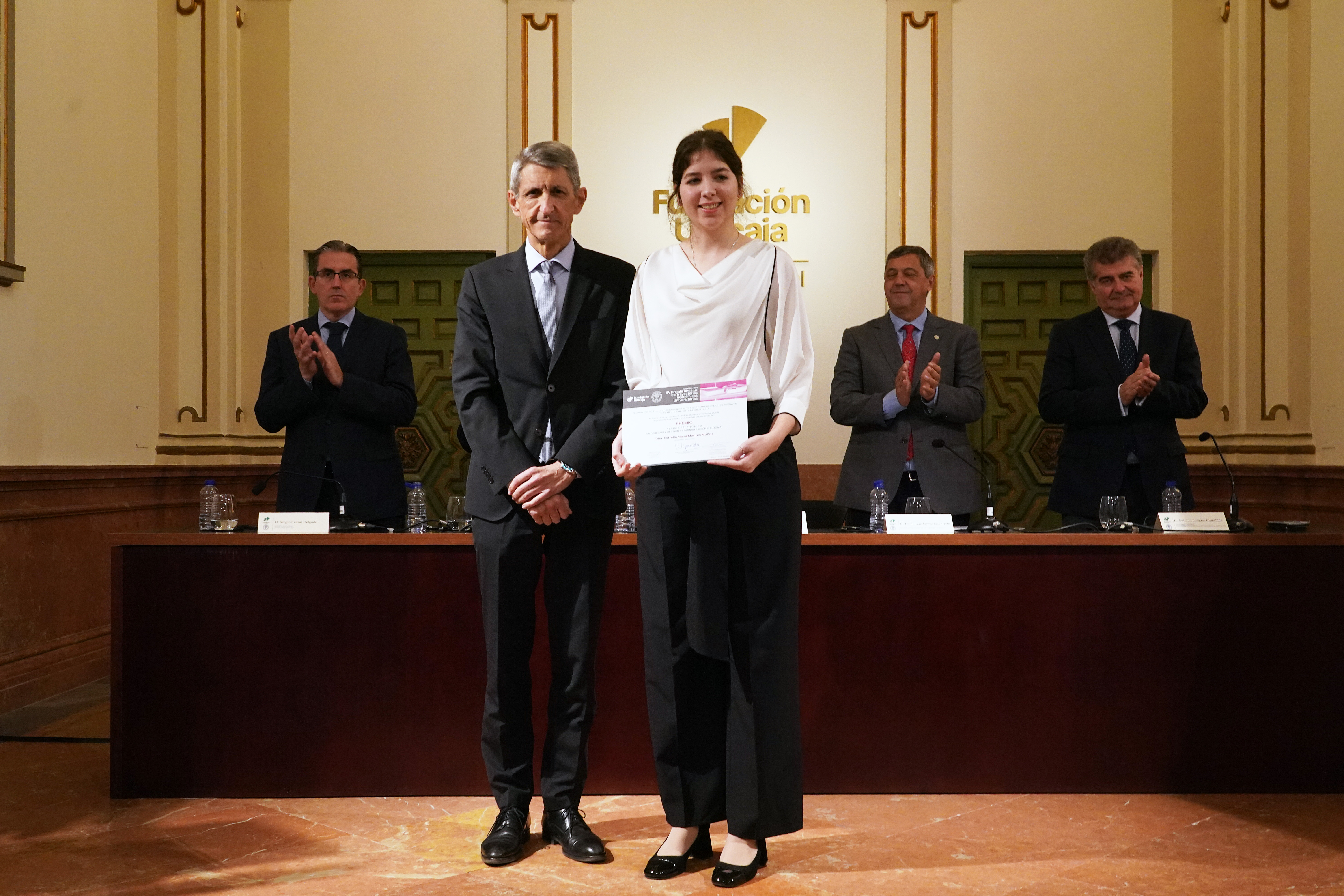 Premio a la mejor trayectoria académica en Derecho y Gestión y Administración Pública a D.ª Estrella María Montes Muñoz, con una dotación económica de 1500€.